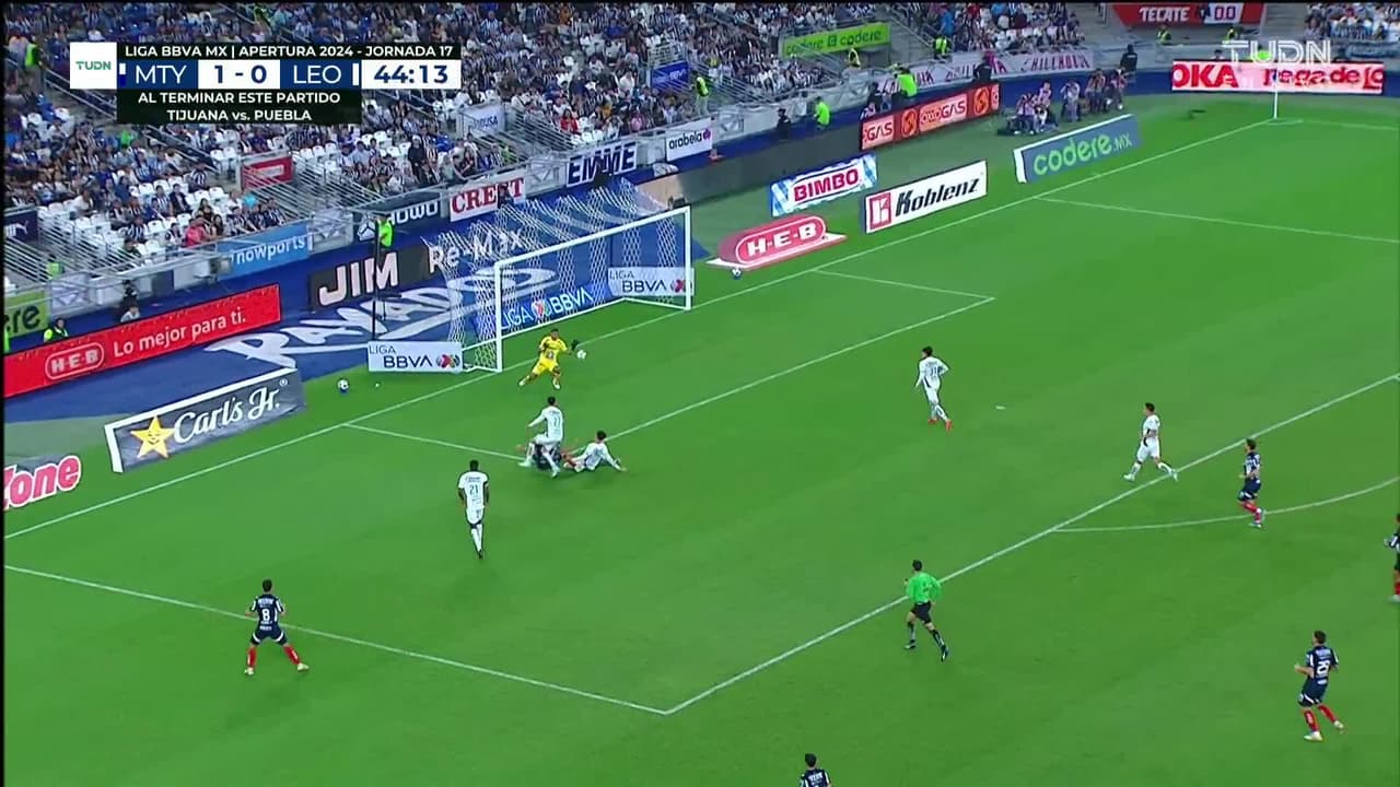 Tiro atajado raso al centro del arco. Lucas Ocampos (Monterrey) zurdazo desde el centro del área. Asistencia de Óliver Torres.