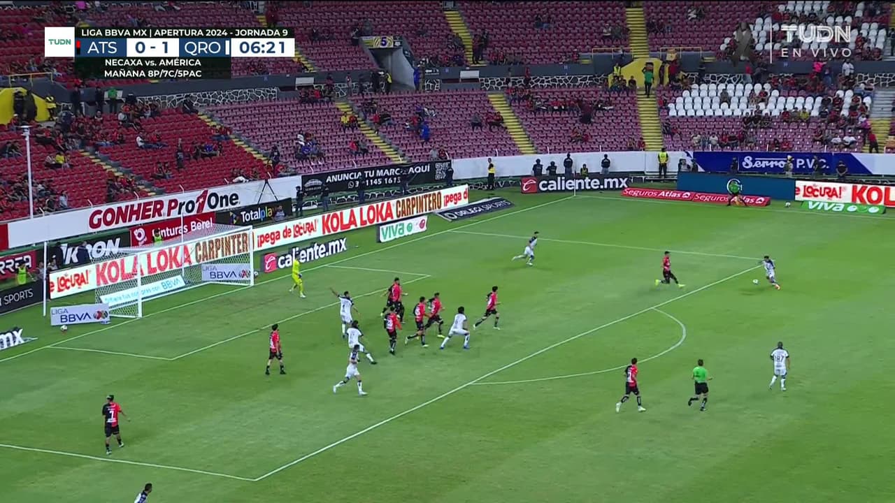 Tiro atajado raso al centro del arco. Lucas Rodríguez (Querétaro) zurdazo desde fuera del área. Asistencia de Samuel Sosa con un centro al área.