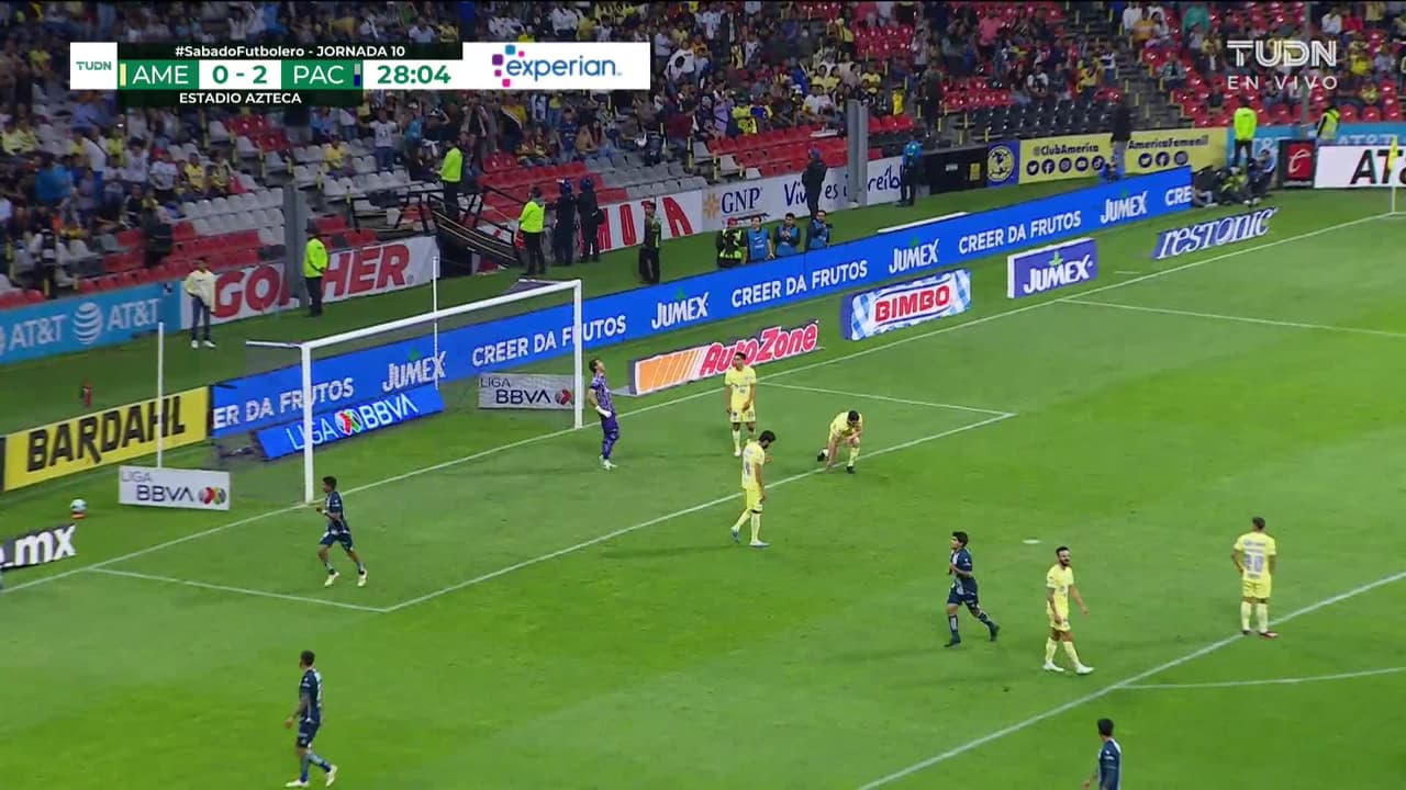 Tiro atajado raso al centro del arco. Luis Chávez (Pachuca) zurdazo desde fuera del área. Asistencia de Javier López.