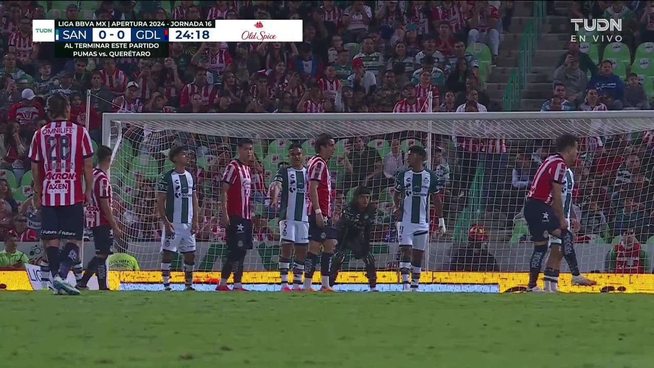 Tiro atajado por abajo a la izquierda. Luis Gabriel Rey (Chivas ) disparo de cabeza desde el centro del área.