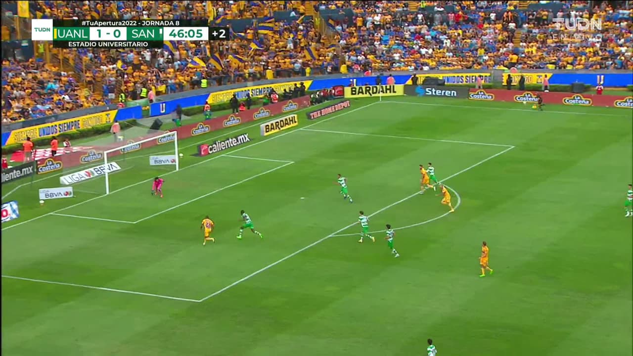 Tiro atajado Por arriba en el centro del arco. Luis Quiñones (Tigres) zurdazo desde el centro del área. Asistencia de Sebastián Córdova.
