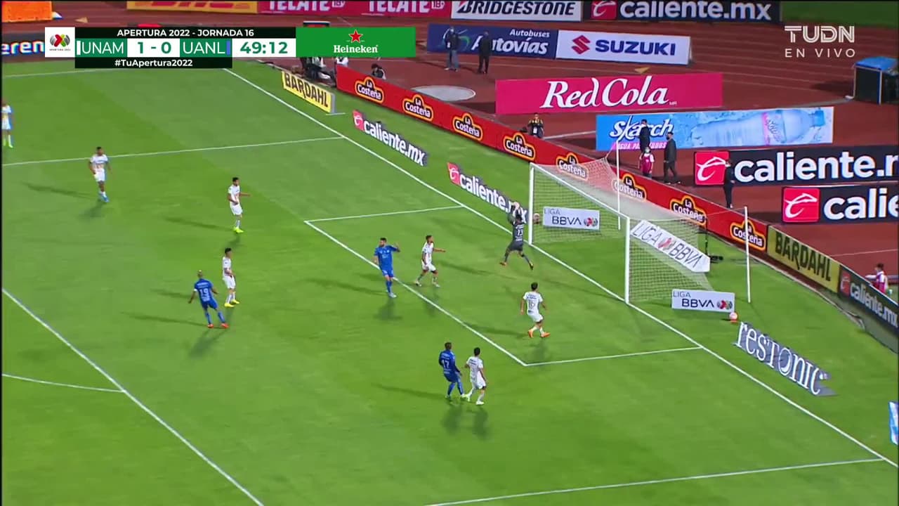 Tiro atajado por abajo a la izquierda. Luis Quiñones (Tigres) zurdazo desde el lado izquierdo dentro del área. Asistencia de Javier Aquino.