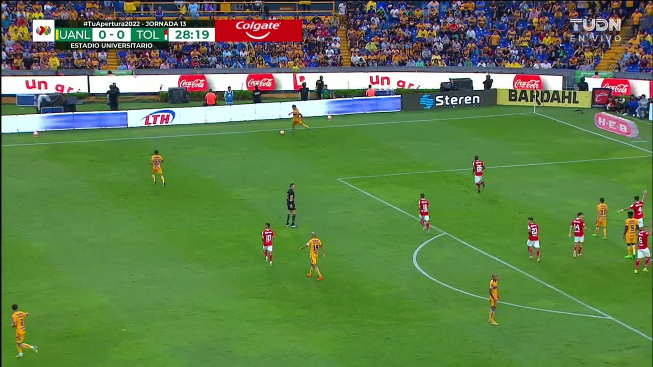 Tiro atajado Por arriba en el centro del arco. Luis Quiñones (Tigres) zurdazo desde fuera del área. Asistencia de Guido Pizarro.