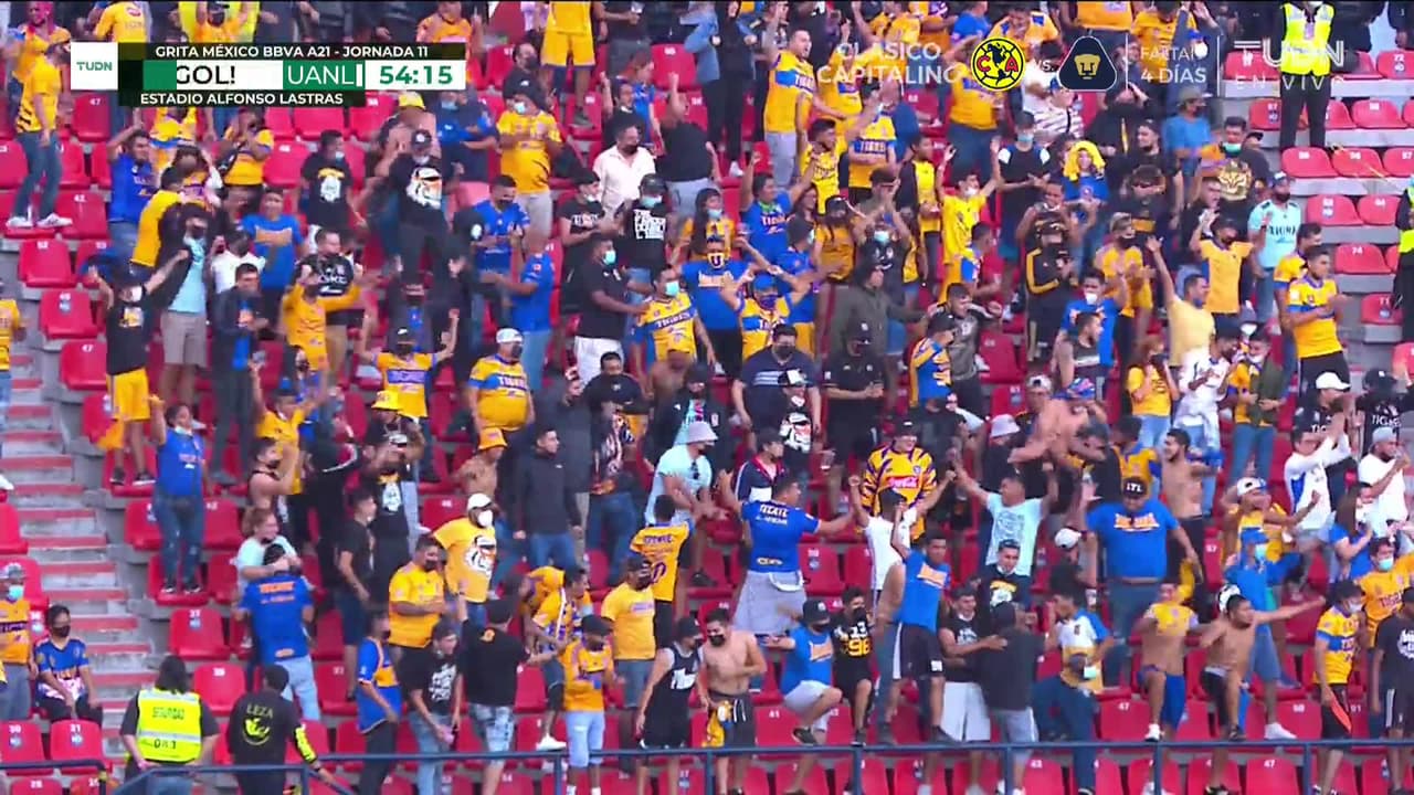 Tiro atajado raso al centro del arco. Luis Quiñones (Tigres) Disparo con la derecha desde el lado derecho dentro del área. Asistencia de Juan Vigón.