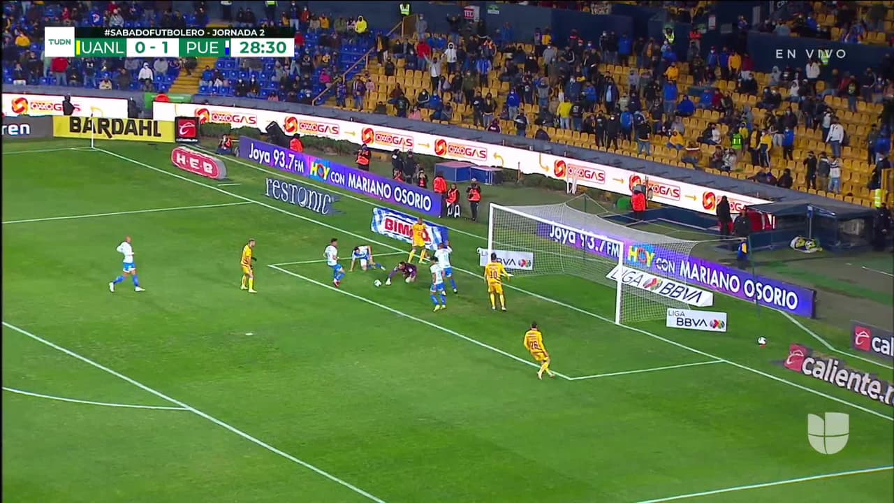 Tiro atajado raso al centro del arco. Luis Quiñones (Tigres) zurdazo sin ángulo desde la izquierda. Asistencia de Sebastián Córdova pase largo.