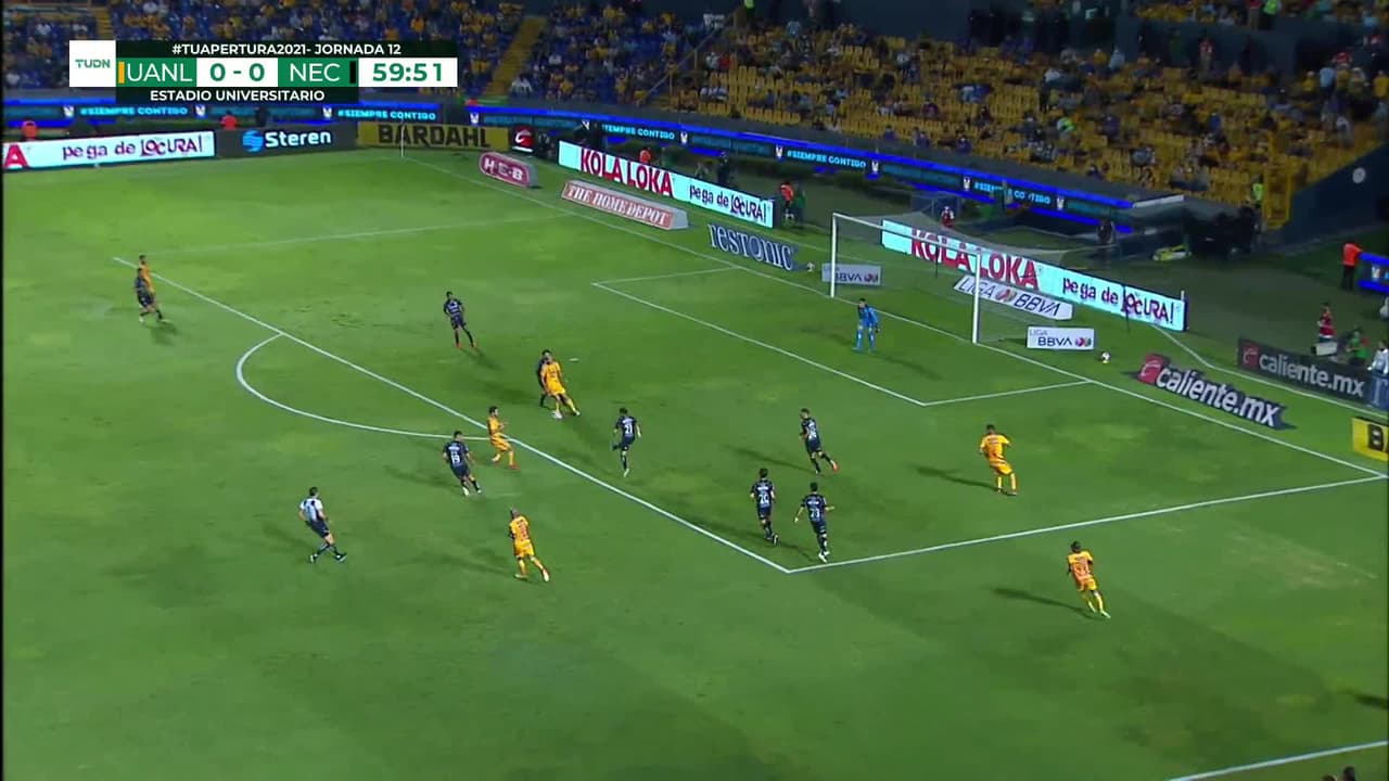 Remate parado. Luis Rodríguez (Tigres UANL) remate con la derecha desde fuera del área.