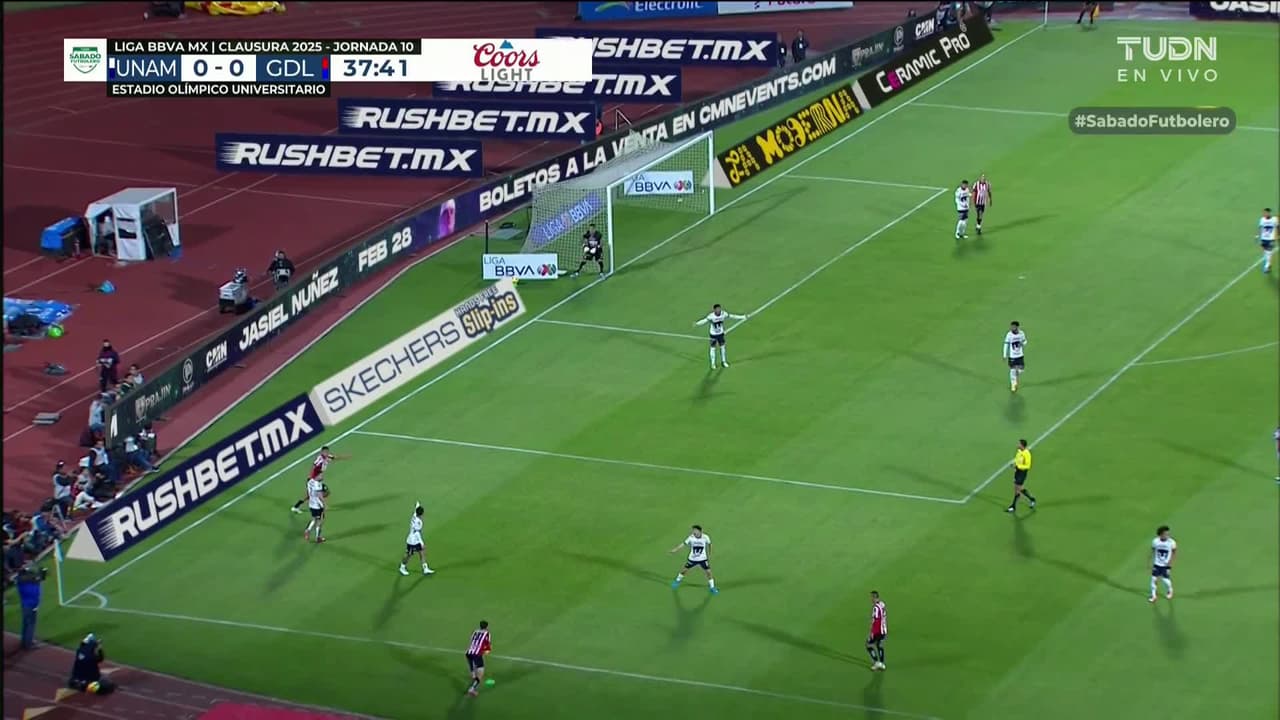 Tiro atajado Por arriba en el centro del arco. Luis Romo (Chivas ) Disparo con la derecha desde el lado izquierdo dentro del área. Asistencia de Mateo Chávez.
