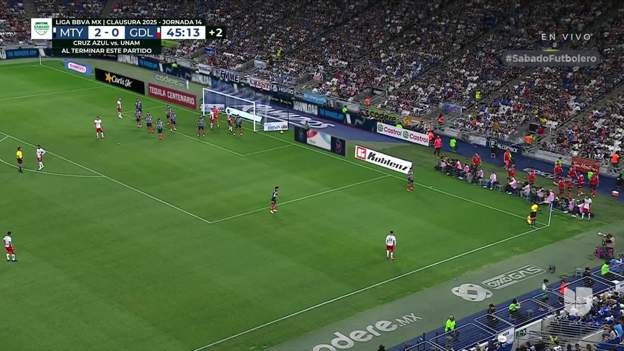 Tiro atajado Por arriba en el centro del arco. Luis Romo (Chivas ) disparo de cabeza sin ángulo desde la derecha. Asistencia de Roberto Alvarado con un centro al área.