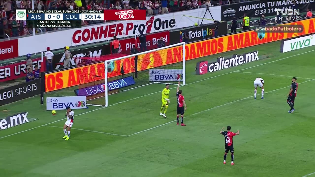 Tiro atajado por abajo a la izquierda. Luis Romo (Chivas ) Disparo con la derecha desde fuera del área. Asistencia de Mateo Chávez.