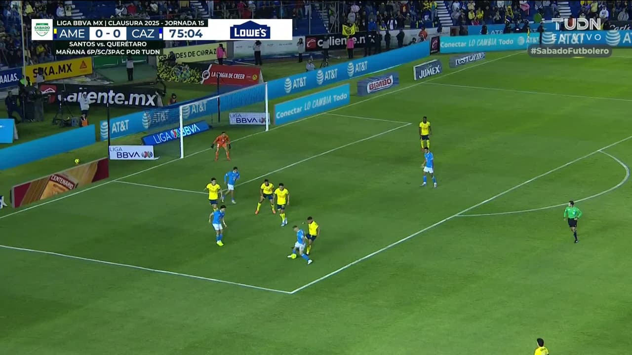 Tiro atajado por abajo a la izquierda. Luka Romero (Cruz Azul) zurdazo desde el lado izquierdo dentro del área.