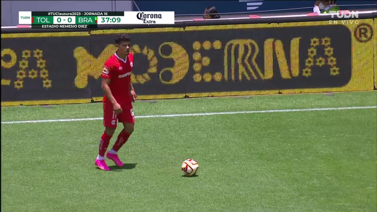 Tiro atajado raso al centro del arco. Marcel Ruiz (Toluca) Disparo con la derecha desde el lado derecho dentro del área. Asistencia de Brian García.