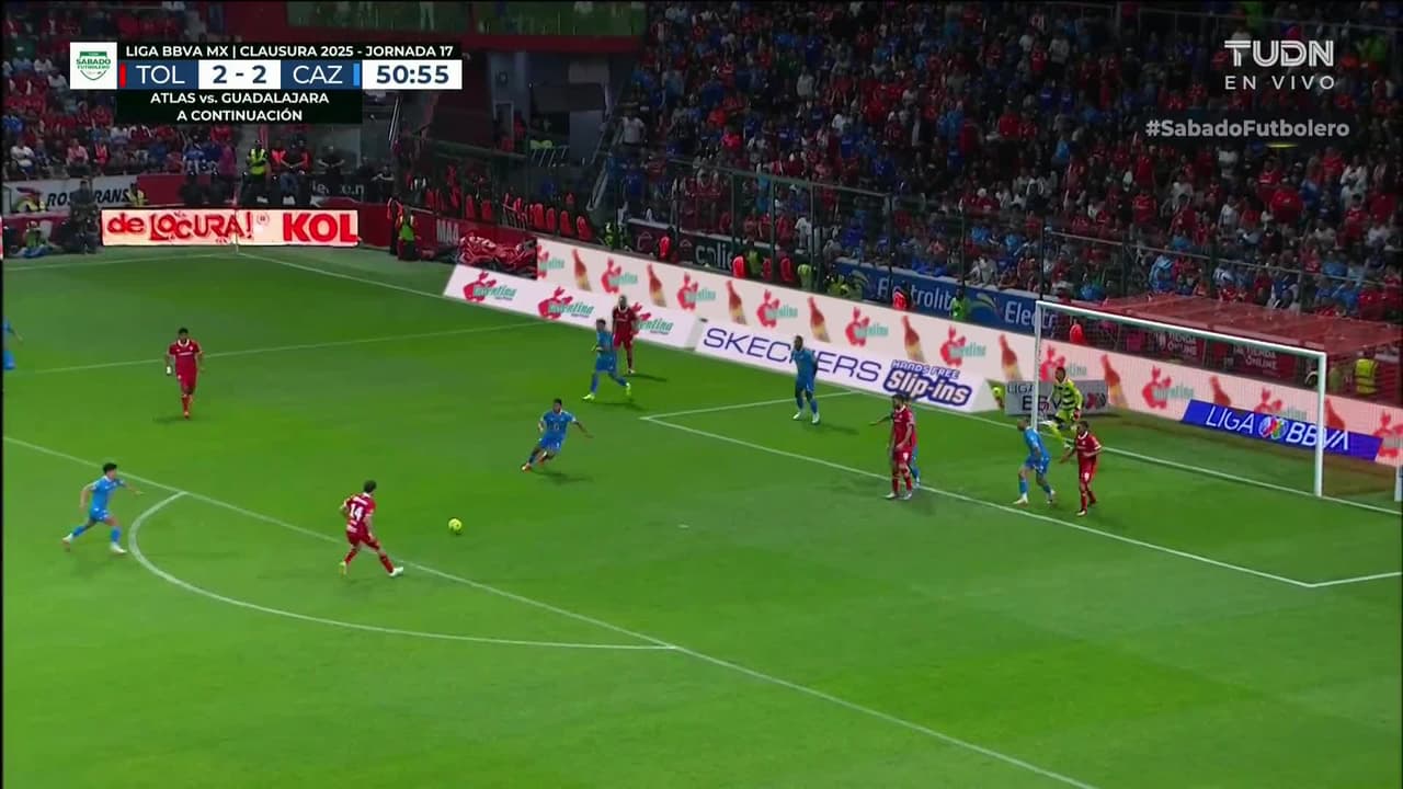 Tiro atajado. Marcel Ruíz (Toluca) Disparo con la derecha desde el lado derecho dentro del área.