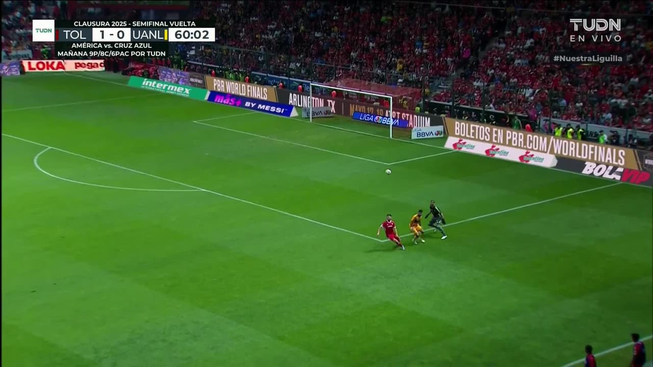 Tiro atajado al ángulo superior derecho. Marcel Ruíz (Toluca) Disparo con la derecha desde fuera del área. Asistencia de Paulinho.