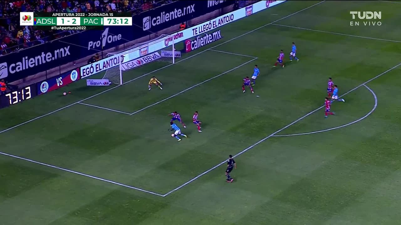 Tiro atajado raso al centro del arco. Marino Hinestroza (Pachuca) zurdazo desde el lado izquierdo dentro del área. Asistencia de Avilés Hurtado pase largo.