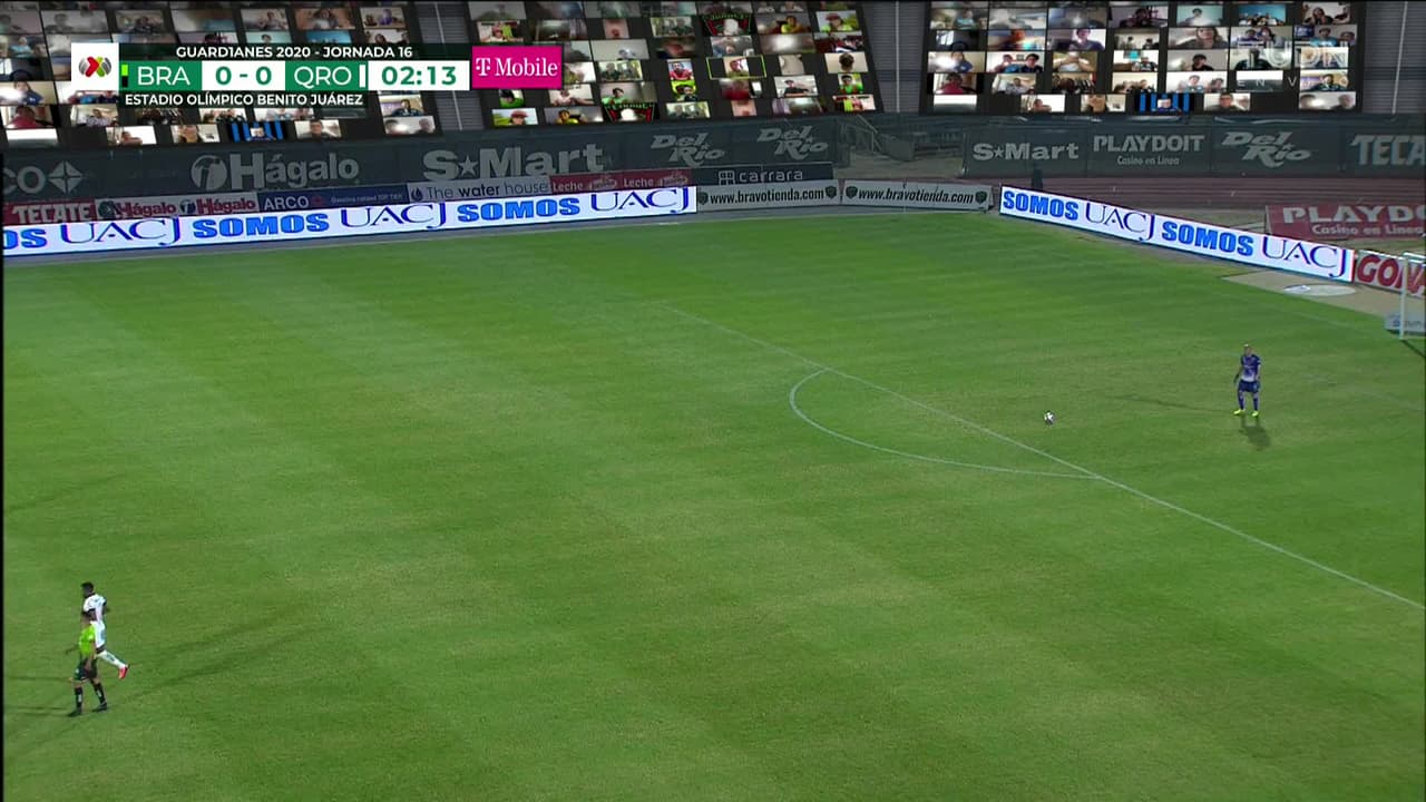Tiro atajado. Martín Rea (Querétaro) disparo de cabeza desde el centro del área.