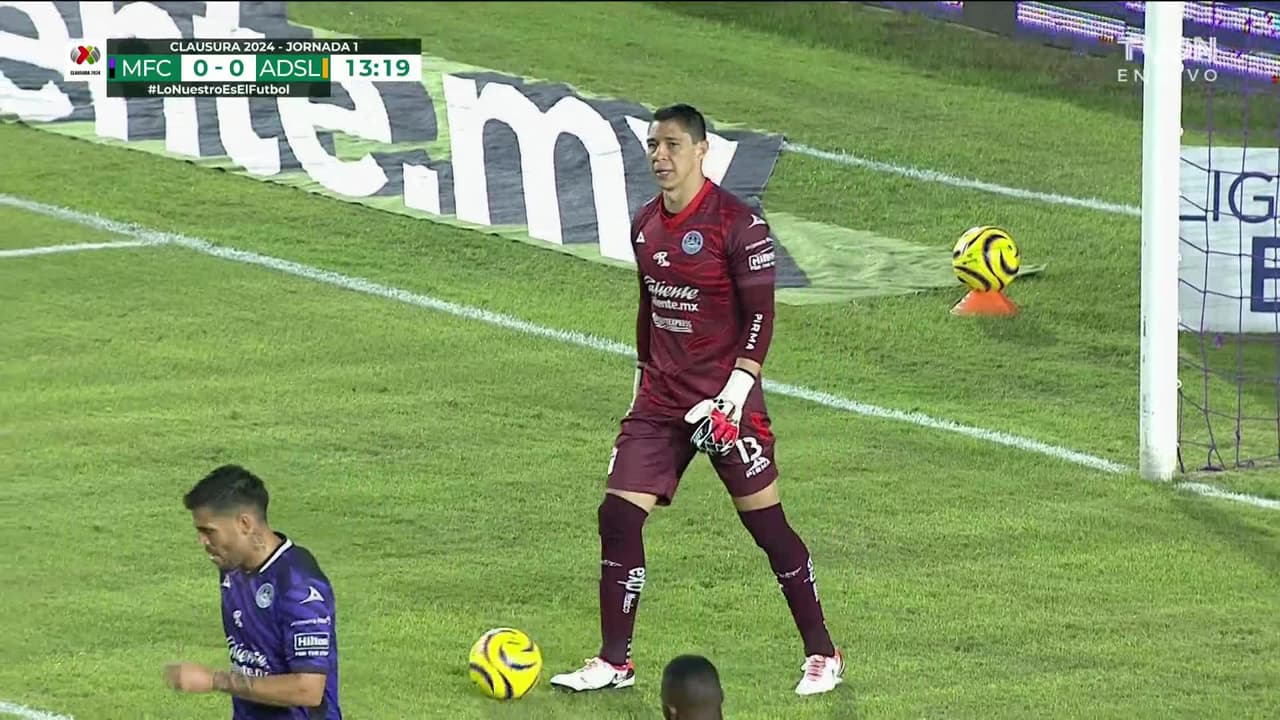 Tiro atajado por abajo a la izquierda. Mateo Klimowicz (Atlético San Luis) zurdazo desde el lado izquierdo dentro del área. Asistencia de Javier Güémez.
