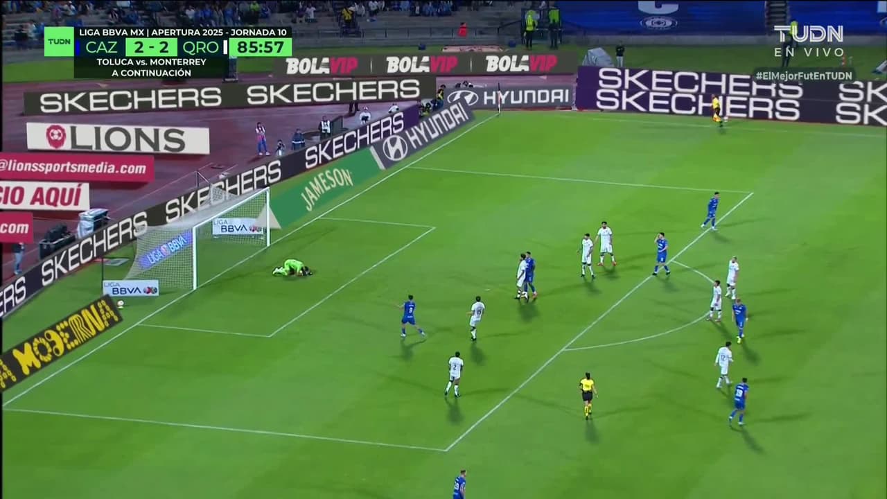 Tiro atajado. Mateusz Bogusz (Cruz Azul) Disparo con la derecha desde fuera del área.