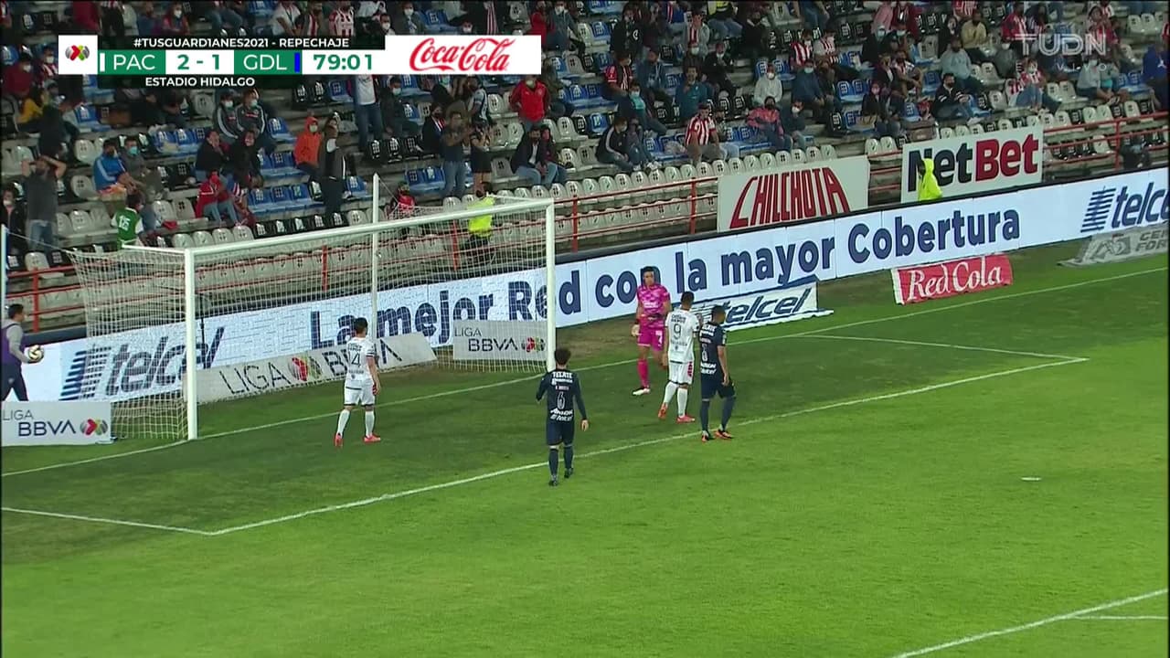 Tiro atajado al ángulo superior derecho. Matías Catalán (Pachuca) Disparo con la derecha desde fuera del área. Asistencia de Víctor Guzmán.