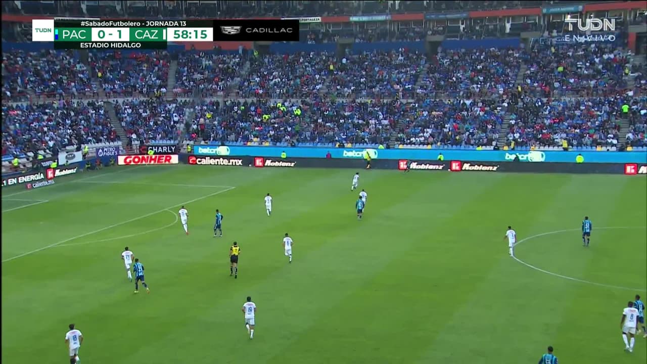 Tiro atajado Por arriba en el centro del arco. Mauricio Isais (Pachuca) zurdazo desde fuera del área. Asistencia de Gustavo Cabral pase largo.