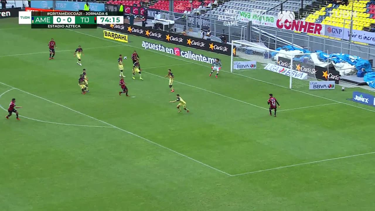 Tiro atajado por abajo a la izquierda. Mauro Manotas (Club Tijuana) Disparo con la derecha desde el lado izquierdo dentro del área. Asistencia de Jordi Cortizo pase largo.
