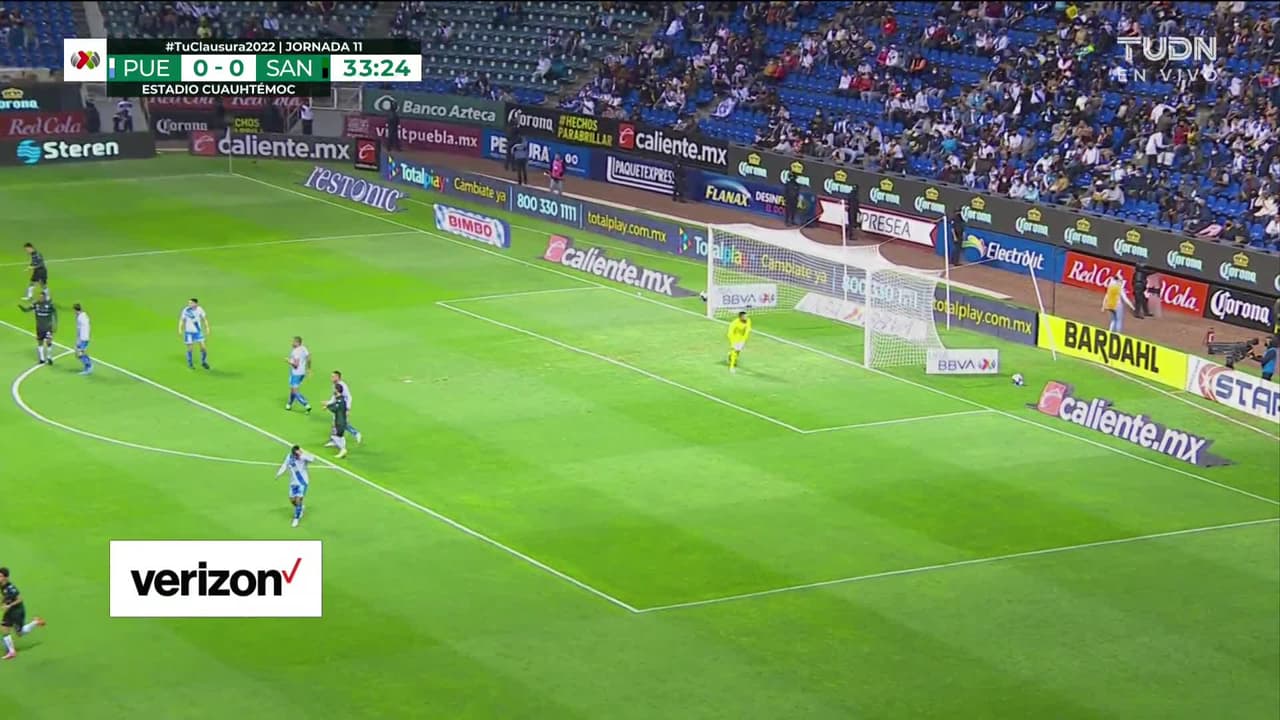Tiro atajado raso al centro del arco. Maximiliano Araujo (Puebla) zurdazo desde fuera del área. Asistencia de Federico Mancuello.