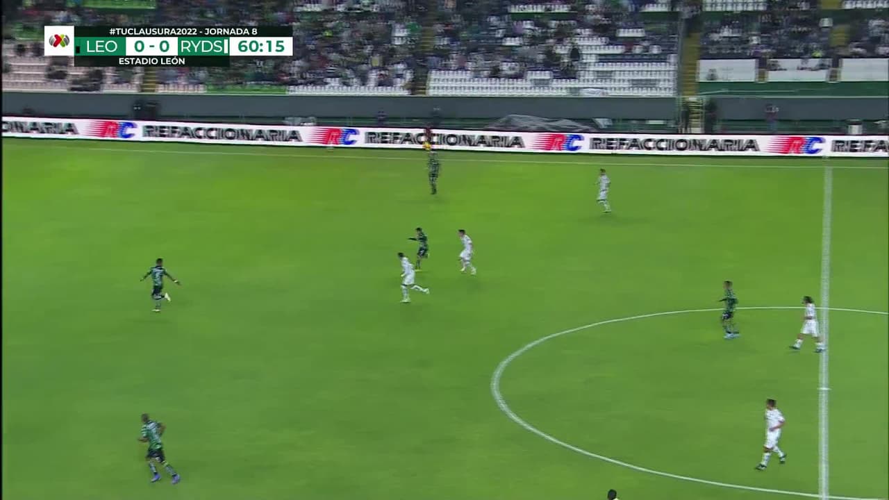 Tiro atajado junto al lado derecho de la portería. Maximiliano Meza (Monterrey) zurdazo desde fuera del área. Asistencia de Sebastián Vegas pase largo.