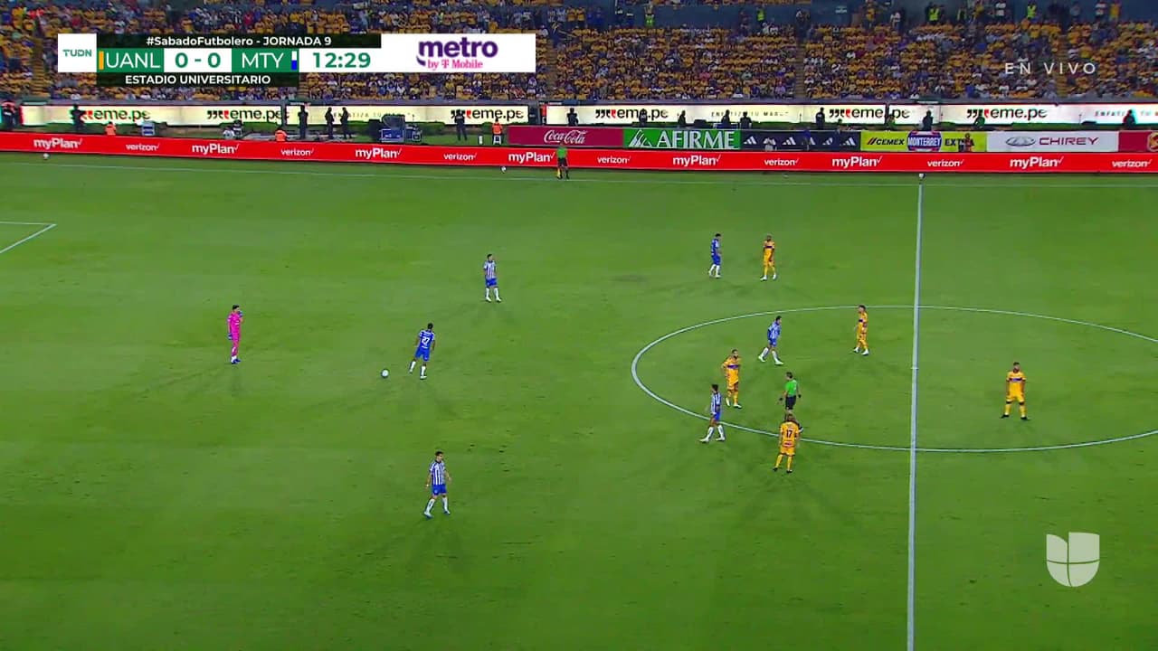 Tiro atajado por abajo a la izquierda. Maximiliano Meza (Monterrey) zurdazo desde el centro del área. Asistencia de Luis Romo después de un pase en profundidad.