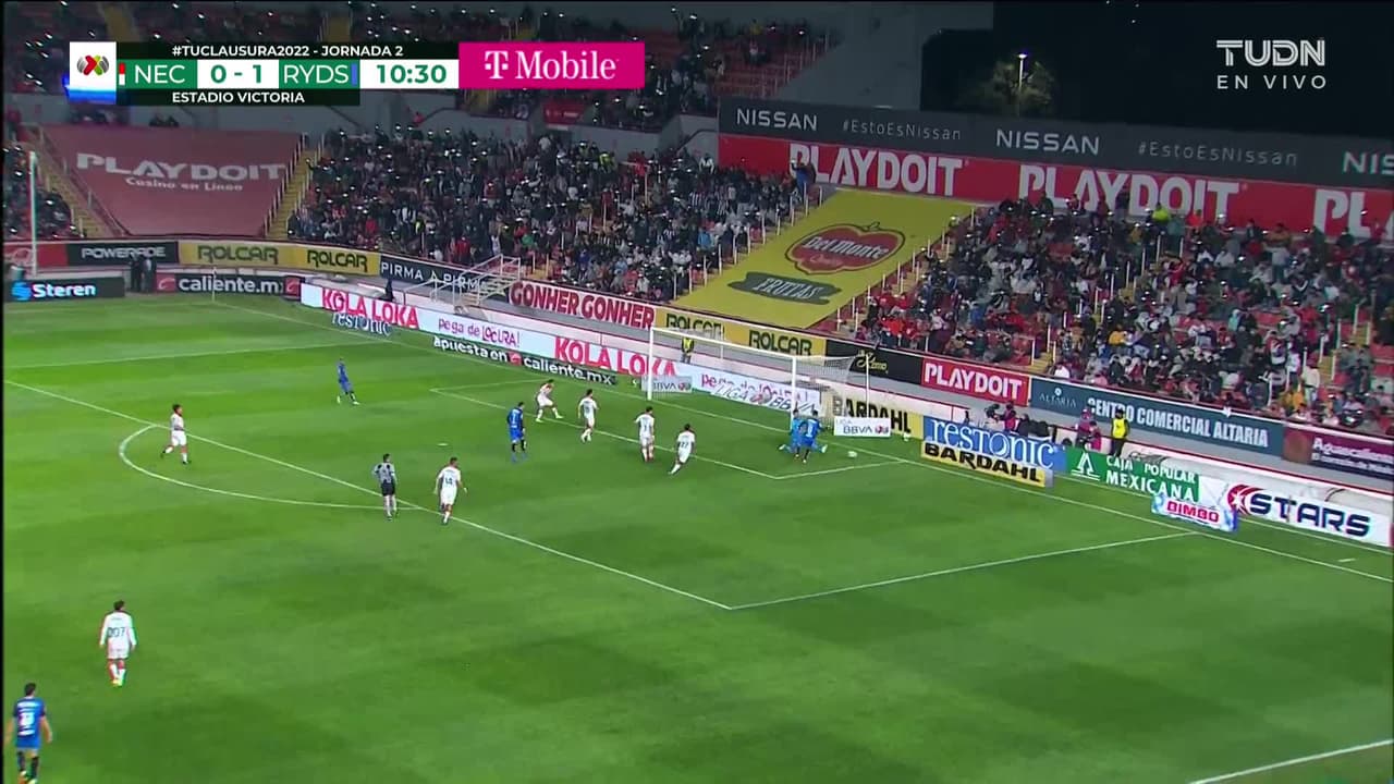 Tiro atajado raso al centro del arco. Maximiliano Meza (Monterrey) Disparo con la derecha a quemarropa desde el lado derecho.