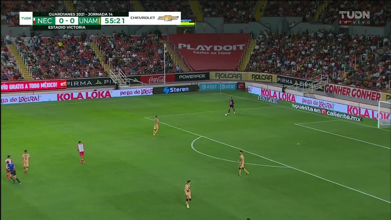 Tiro atajado. Maximiliano Salas (Necaxa) zurdazo desde más de 30 metros.