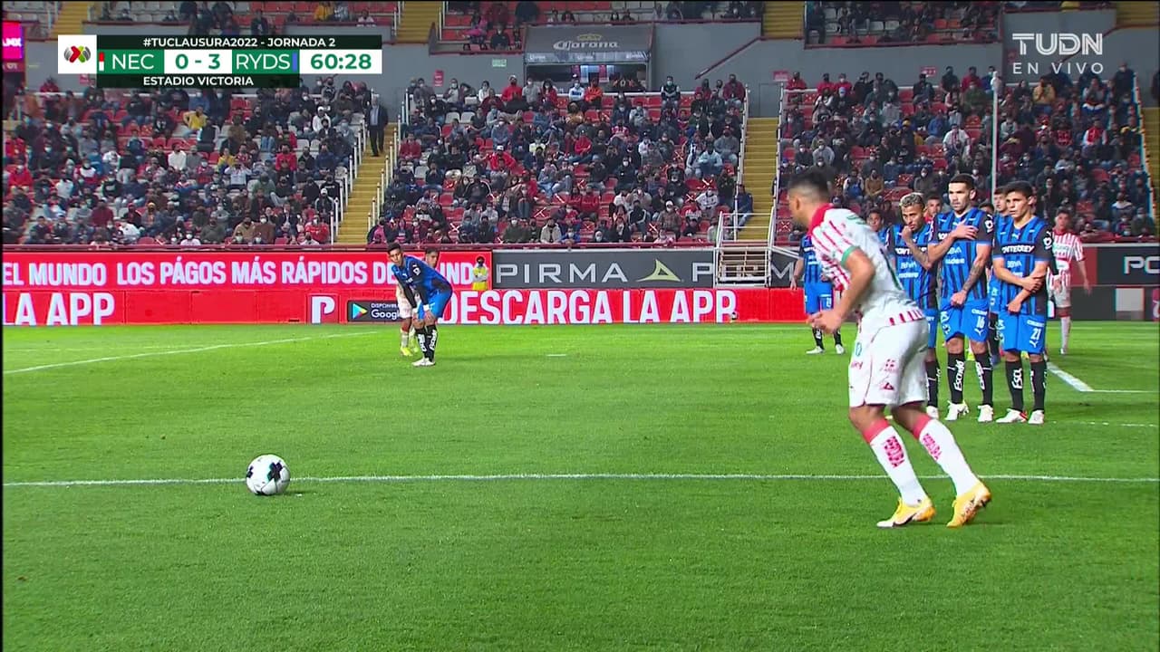 Tiro atajado por abajo a la izquierda. Maximiliano Salas (Necaxa) zurdazo desde muy lejos y sin ángulo.