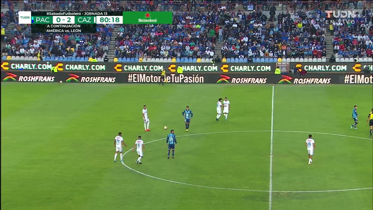Tiro atajado raso al centro del arco. Michael Estrada (Cruz Azul) Disparo con la derecha desde muy lejos y sin ángulo. Asistencia de Juan Escobar pase largo.