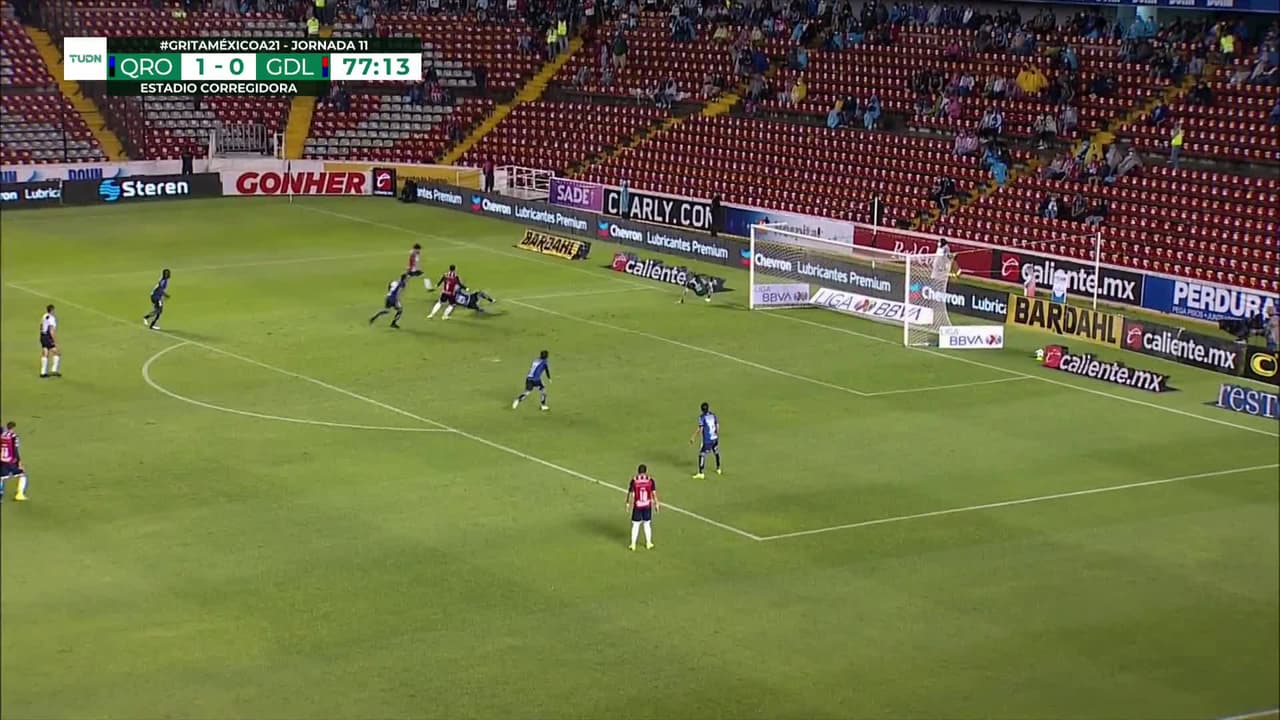 Remate parado por bajo a la izquierda. Miguel Ponce (Chivas ) remate con la izquierda desde fuera del área. Asistencia de Alan Torres.