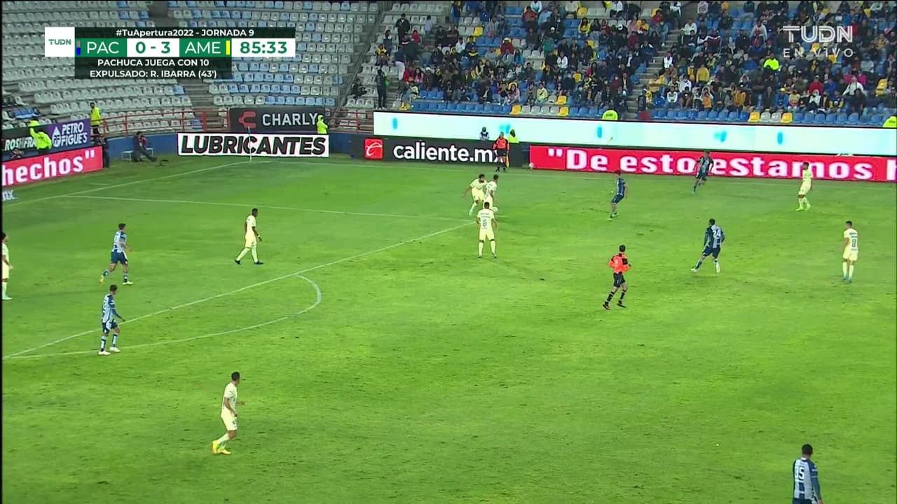 Tiro atajado por abajo a la izquierda. Miguel Tapias (Pachuca) zurdazo desde fuera del área. Asistencia de Luis Chávez.
