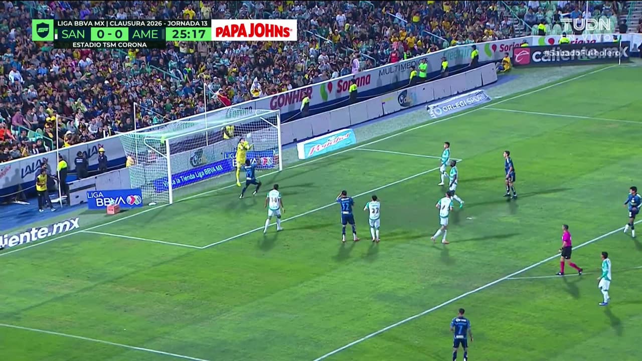Tiro atajado Por arriba en el centro del arco. Miguel Vázquez (América) disparo de cabeza desde el centro del área. Asistencia de Rodrigo Dourado.