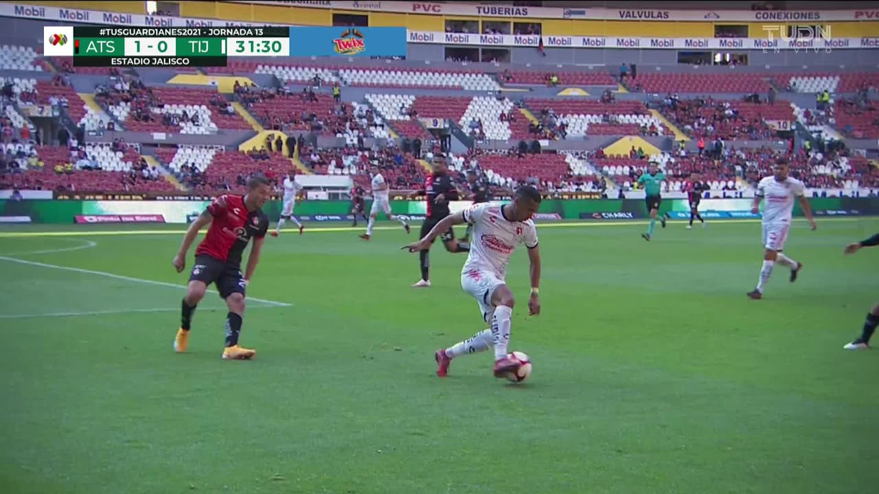 Tiro atajado raso al centro del arco. Milton Caraglio (Atlas) zurdazo desde el lado izquierdo dentro del área. Asistencia de Renato Ibarra.