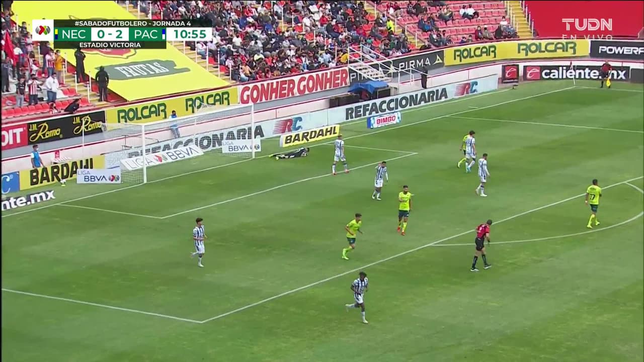 Tiro atajado junto al lado derecho de la portería. Milton Giménez (Necaxa) disparo de cabeza desde el centro del área. Asistencia de Jesús Escoboza con un centro al área.