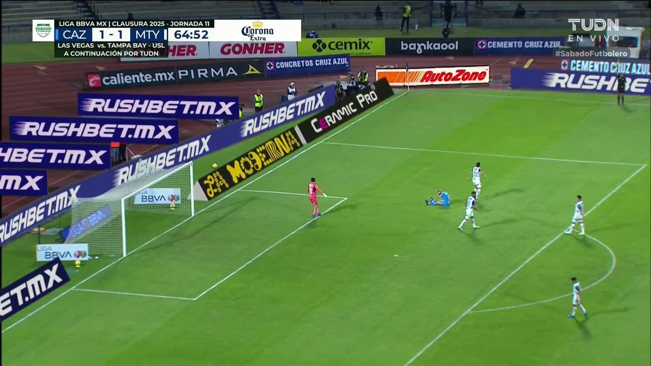 Tiro atajado raso al centro del arco. Nelson Deossa (Monterrey) Disparo con la derecha desde el centro del área.