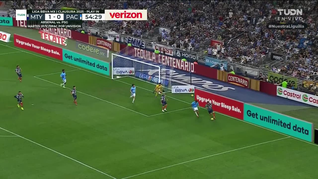 Tiro atajado raso al centro del arco. Nelson Deossa (Monterrey) zurdazo desde fuera del área.