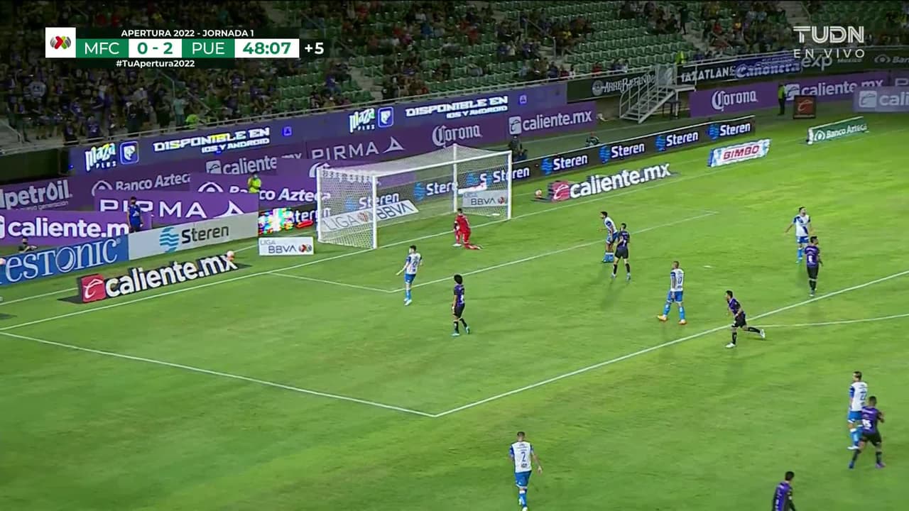 Tiro atajado raso al centro del arco. Néstor Vidrio (Mazatlán FC) Disparo con la derecha desde fuera del área. Asistencia de Marco Fabián.