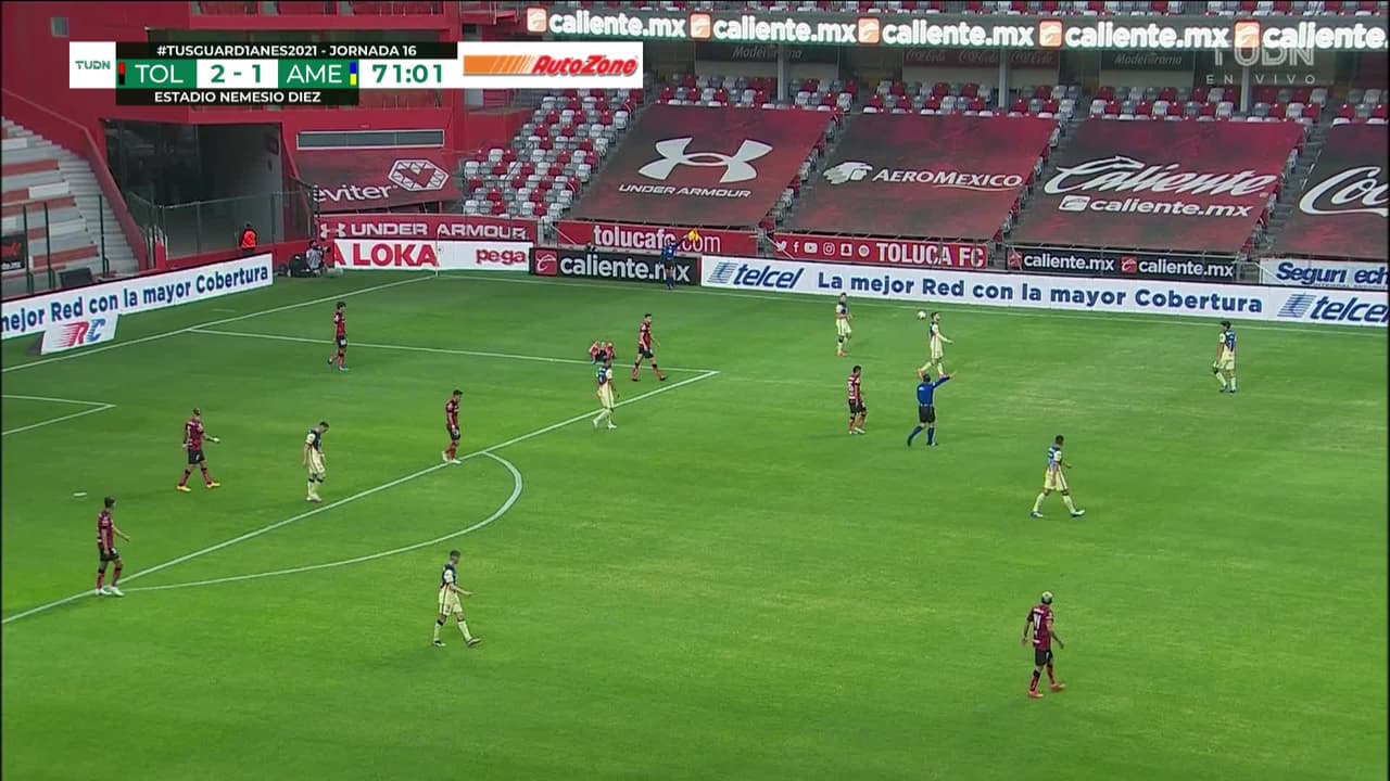 Tiro atajado raso al centro del arco. Nicolás Benedetti (América) Disparo con la derecha desde el lado derecho dentro del área. Asistencia de Roger Martínez pase largo.