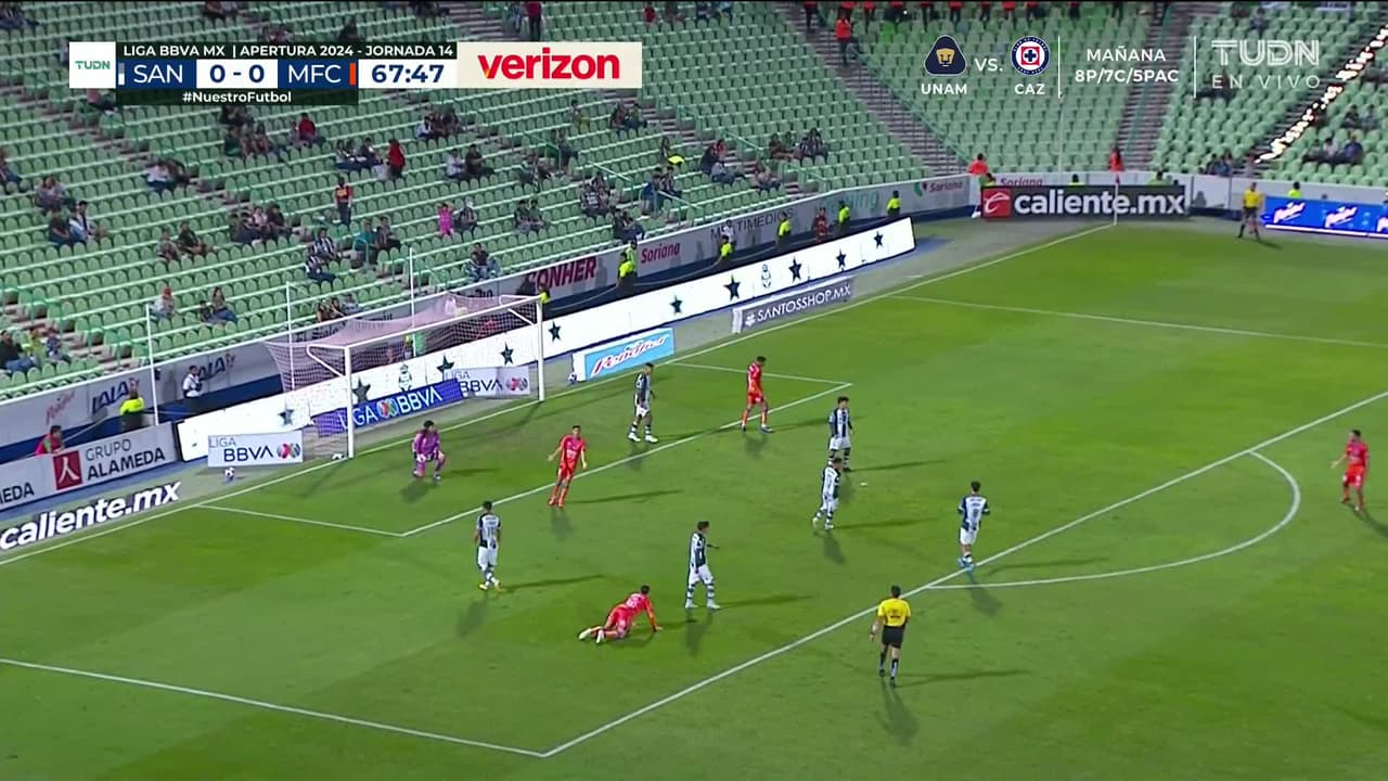 Tiro atajado. Nicolás Benedetti (Mazatlán FC) Disparo con la derecha desde el lado izquierdo dentro del área.