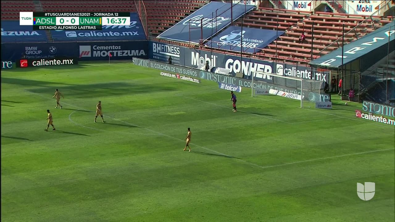 Tiro atajado. Nicolás Ibáñez (Atlético San Luis) Disparo con la derecha desde fuera del área.