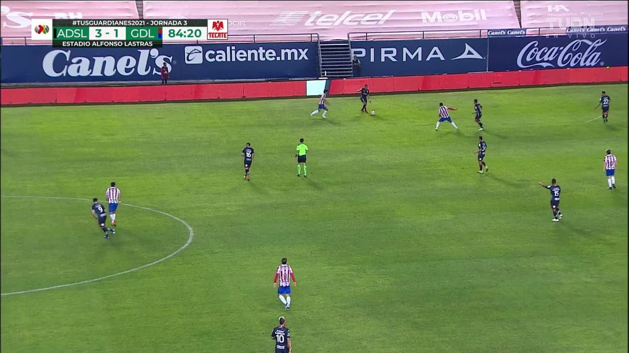 Tiro atajado junto al lado derecho de la portería. Nicolás Ibáñez (Atlético San Luis) Disparo con la derecha desde fuera del área. Asistencia de Javier Güémez.