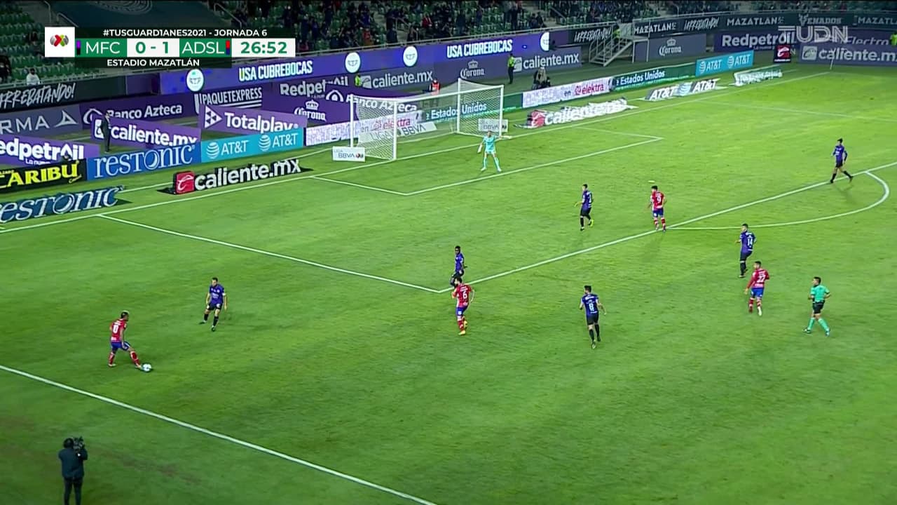 Tiro atajado al ángulo superior derecho. Nicolás Ibáñez (Atlético San Luis) disparo de cabeza desde el centro del área. Asistencia de Damián Batallini con un centro al área.