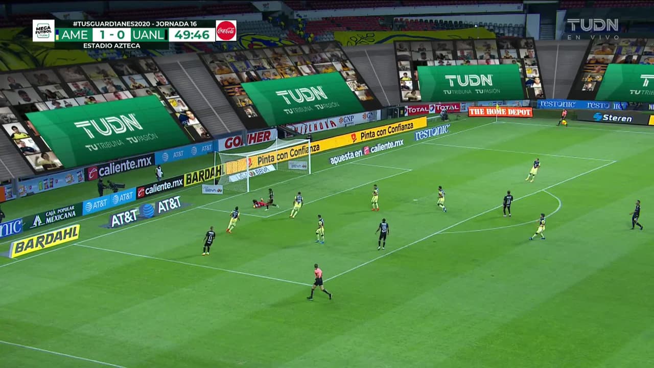Tiro atajado por abajo a la izquierda. Nicolás López (Tigres) zurdazo desde el lado izquierdo dentro del área. Asistencia de Luis Quiñones con un pase de cabeza.