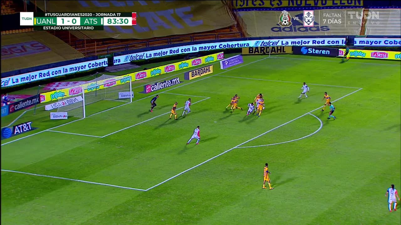 Tiro atajado raso al centro del arco. Nicolás López (Tigres) zurdazo desde el centro del área. Asistencia de André-Pierre Gignac.