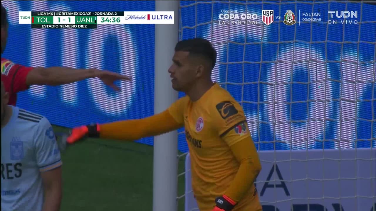 Tiro atajado al ángulo superior derecho. Nicolás López (Tigres) zurdazo desde el lado derecho dentro del área. Asistencia de Javier Aquino con un centro al área.