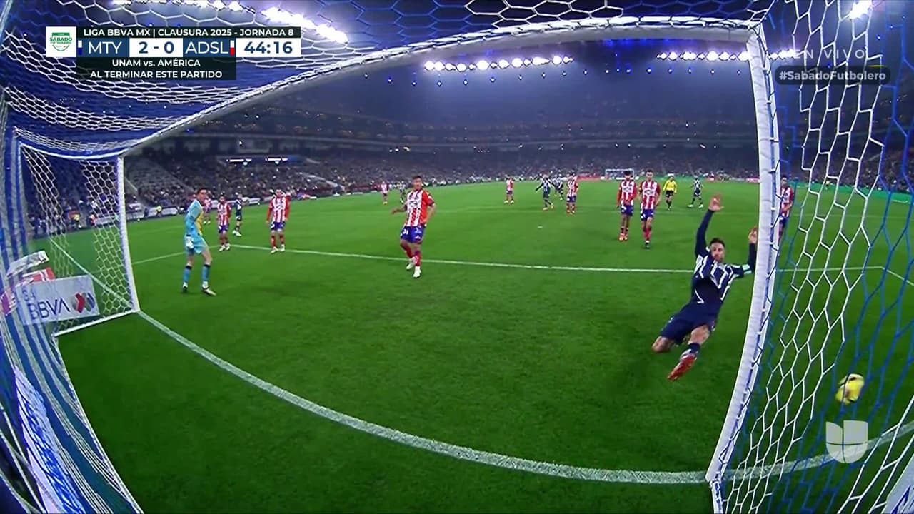 Tiro atajado. Óliver Torres (Monterrey) Disparo con la derecha desde el lado izquierdo dentro del área.