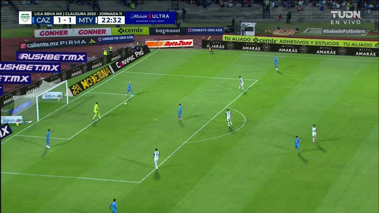 Tiro atajado. Óliver Torres (Monterrey) Disparo con la derecha sin ángulo desde la derecha.