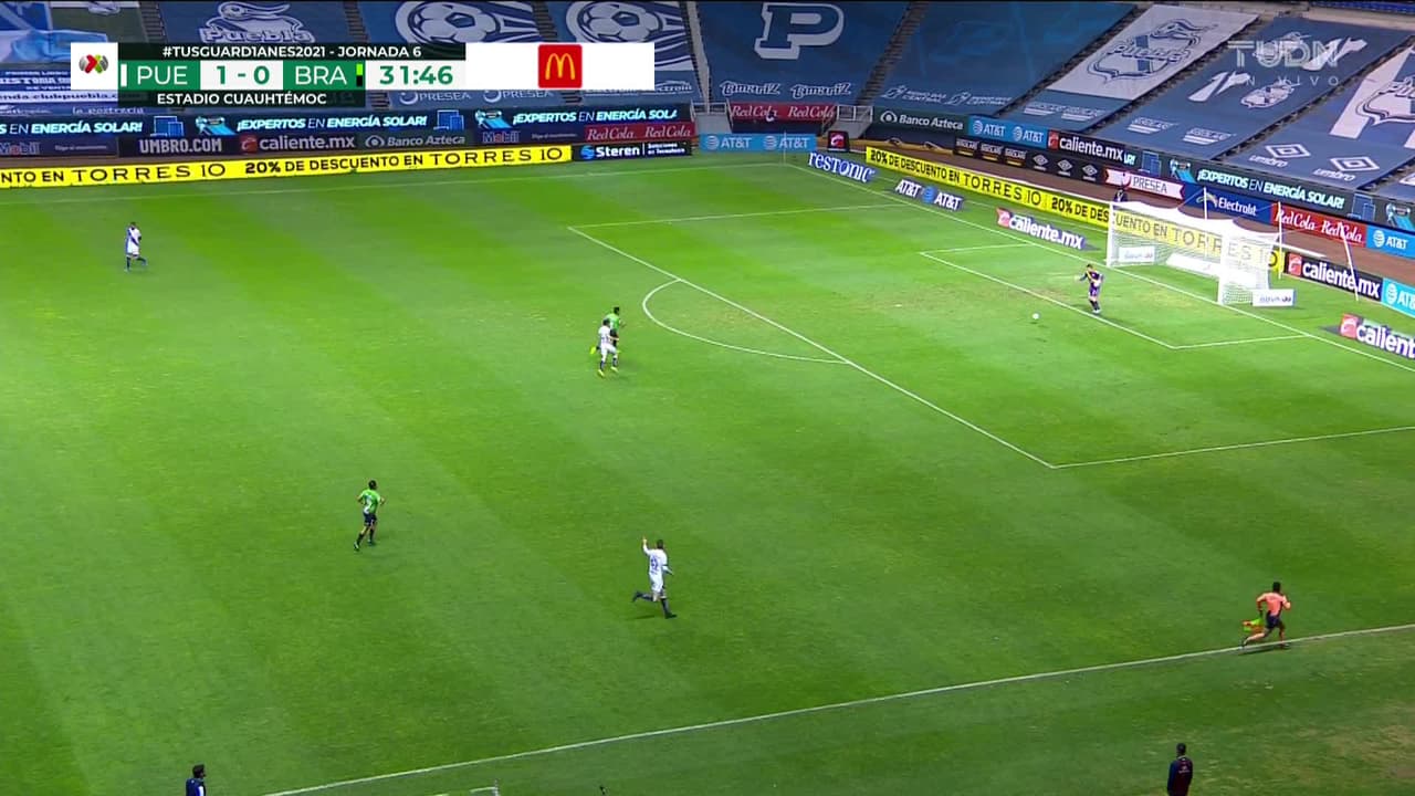 Tiro atajado. Omar Fernández (Puebla) Disparo con la derecha desde fuera del área.